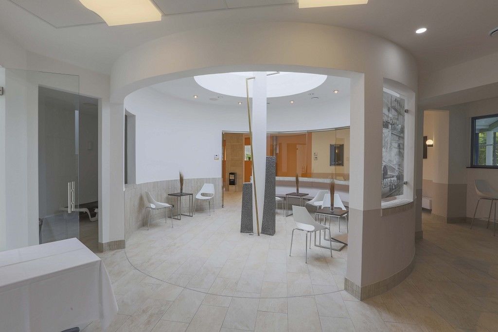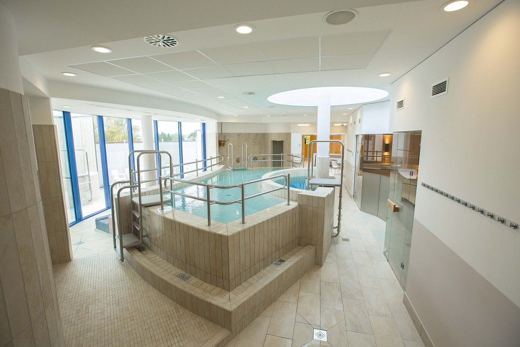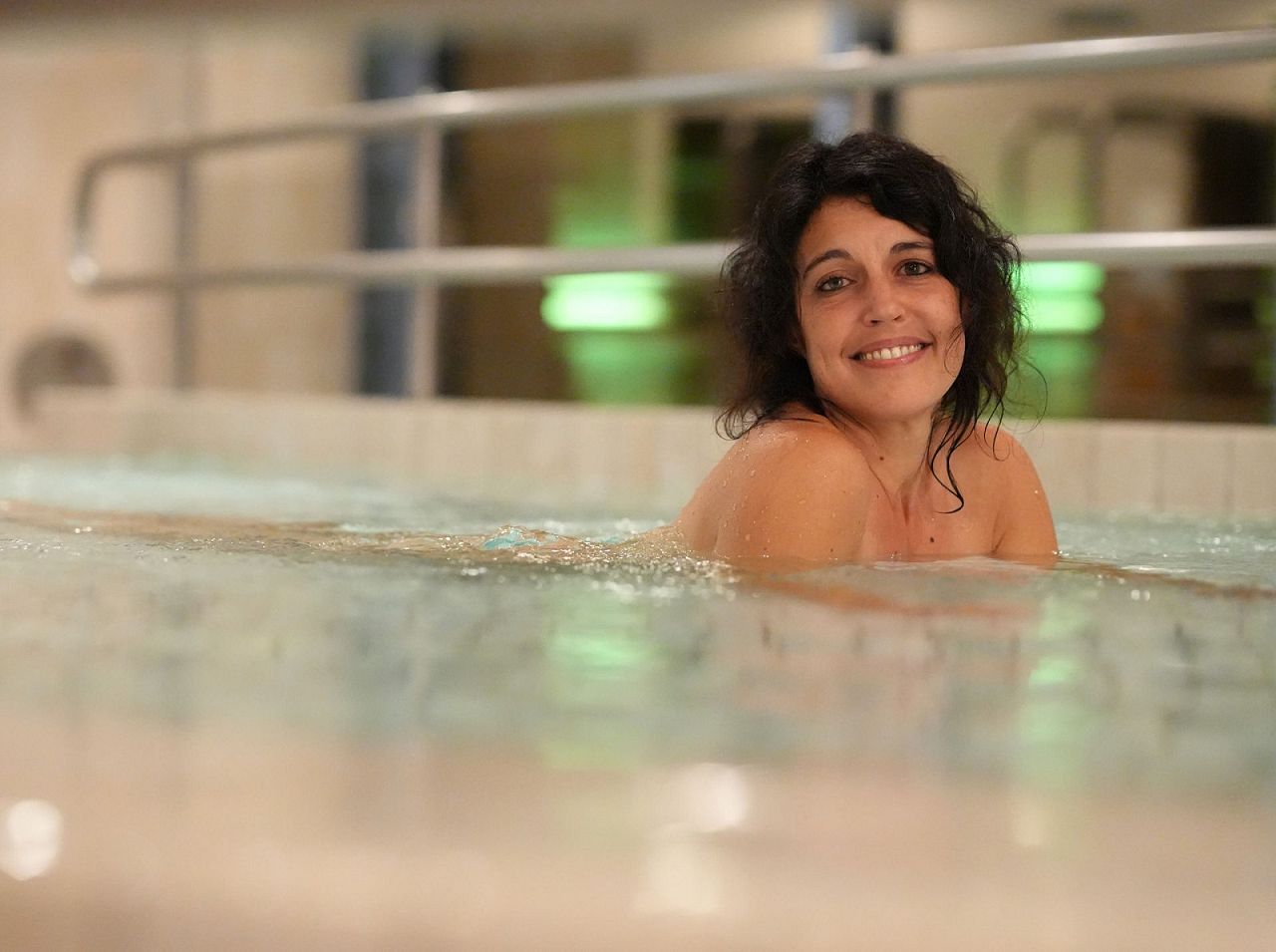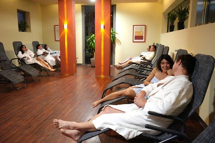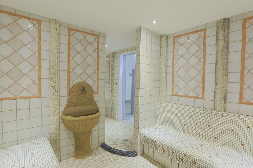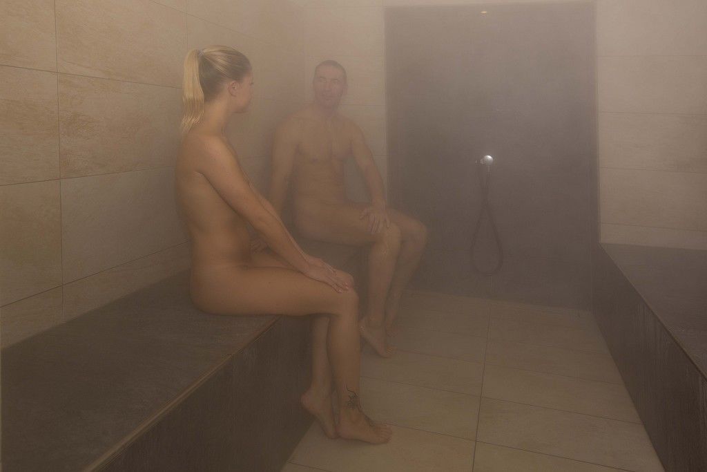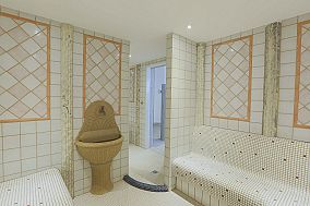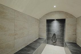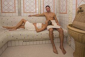 Entspannen Sie im römischen Bad mit lauwarmen Klima und beheizten Liege- und Sitzflächen